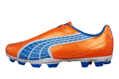 Binding : Apparel Product Description Puma V5.10 i FG Mens Football Boots / Cleats - The Puma v5.10 soccer shoe offers you comfort, durability, and an eye-catching look modeled after the Puma v1.10, at an affordable price.These lightweight Puma soccer cleats are made with speed in mind. The soft polyurethane upper is combined with nylon fabric for a great fit in this durable cleat. The outsole is TPU injected for extra stability and flexibility. The pointed stud configuration is perfect for use on firm natural surfaces. 0
