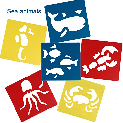 30 pieces of stencil, including 6 pond animal stencils, 6 sea animal stencils, 6 insect stencils, 6 dinosaur stencils and 6 zoo animal stencils, color random