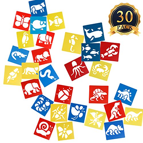 SUBANG 30 Pcs Painting Stencil Plastic Animal Drawing Spraying Templates for Kids Crafts, Five Different Patterns of Painting Templates,Washable Template for School Projects