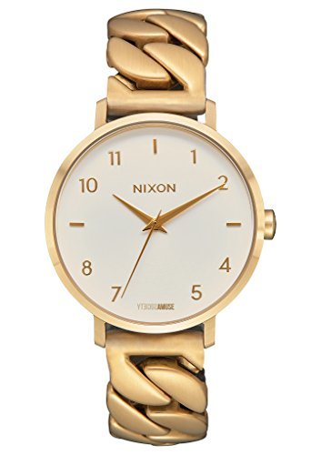 Nixon's classic Arrow watch, updated with a matte chain-link band. Numerals mark the hours. Hinged-snap clasp. Extra links included.