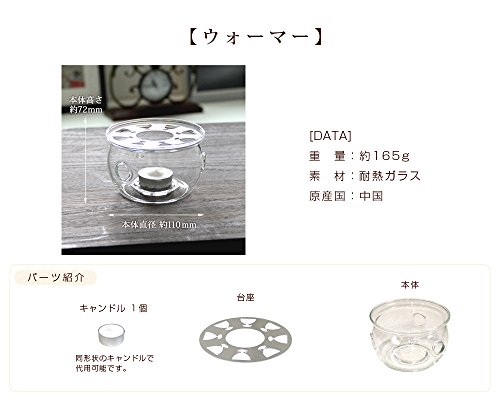 [상품 정보] ●세트내용: 내열 유리《데폿토》소크기1개 유리워머소 1개캔들1개 ●《사》 이 의: 티 포트:높이 약110mm×가 로 폭 약170mm 용량 만수:약400ml 적정:약300ml워머:워머:높이 약720mm×가 로 폭 약110mm ●재질:내열 유리 ●원산국:중국 ●수입 판매자:주식회사 차이나 그랜드