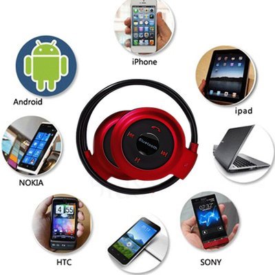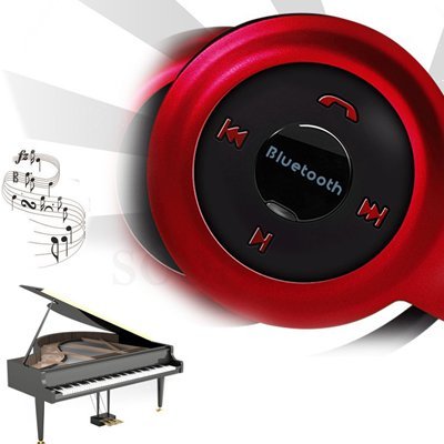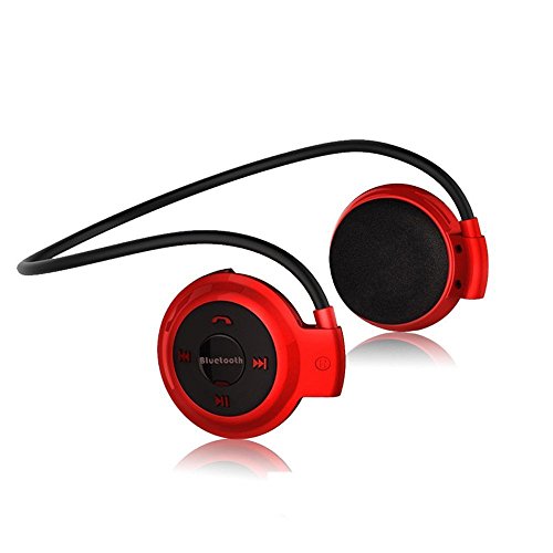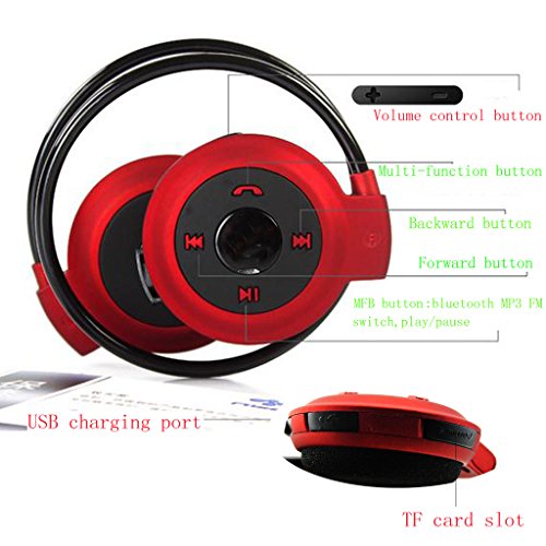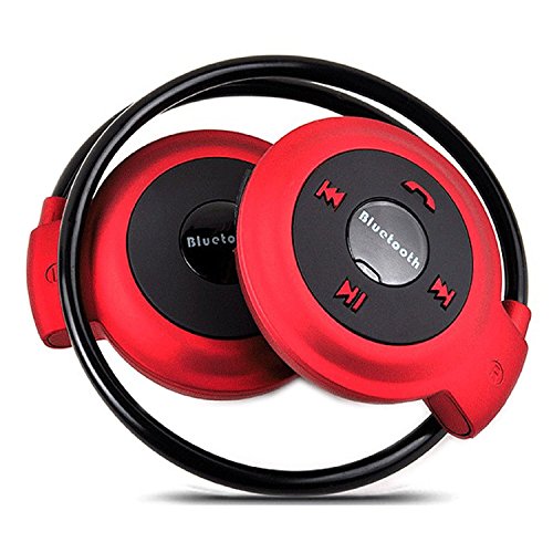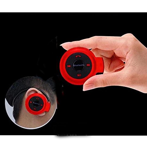 TopePop Universal Sports Stereo Wireless Bluetooth Headset Earpiece Earphones Music Earbuds Built-in Microphone Mp3 Fm for Android Ios Cellphone Smartphone (Red)