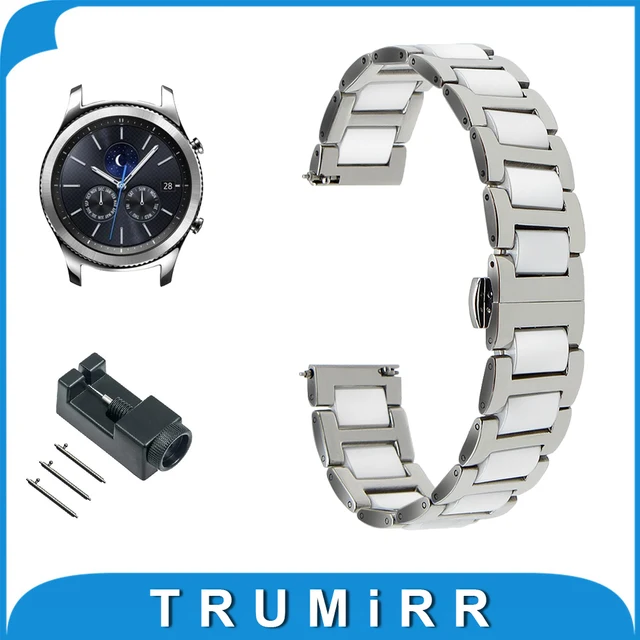 | [해외]22 미리메터 세라믹 + 스테인레스 스틸 시계 밴드 samsung gear s3 클래식/프론티어 빠른 릴리스 스트랩 butterfly 버클 팔찌 |