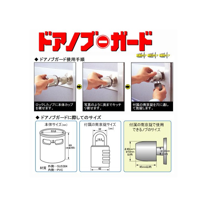 컵을 도어 노브에 씌우고, 난킨죠(돈 주머니 모양의 작은 자물쇠) 에 잠그는 것 뿐(만,만큼).