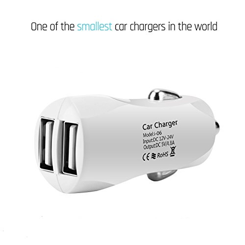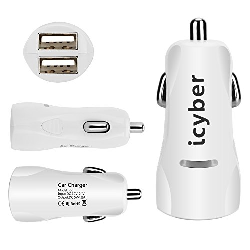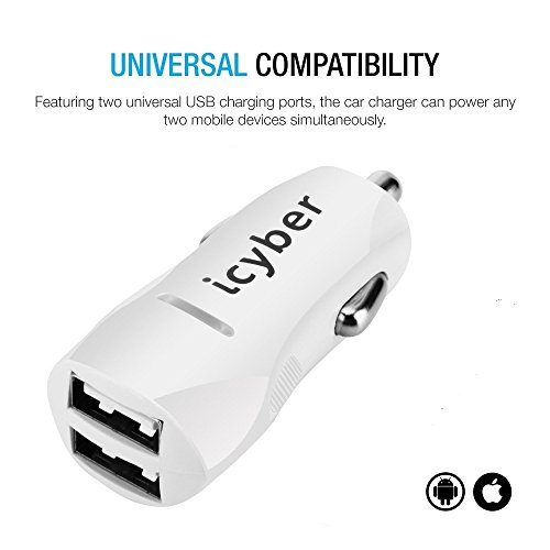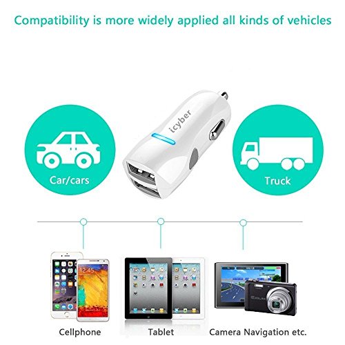 icyber ® 4.8a/24w 2 Smart Port Car Charger [White] for Iphone 6s Plus 6 Plus 6 5s 5 5c 4s, Samsung Galaxy S6 Edge Plus Note 5 4 S5 Tab S, Lg G4, HTC One M9, Nexus 5x 6p 5, Ipads Portable