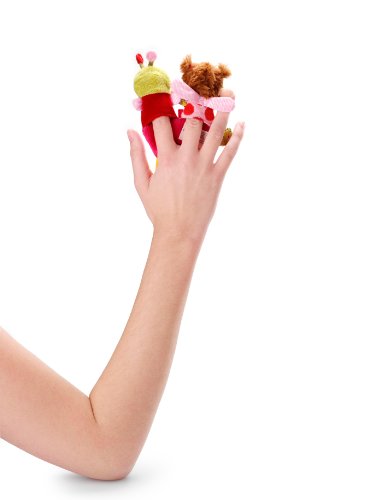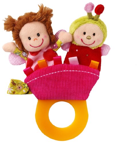 A teether, pair of finger puppets and a pacifier holder (pacifier not included)