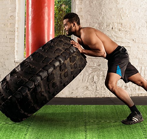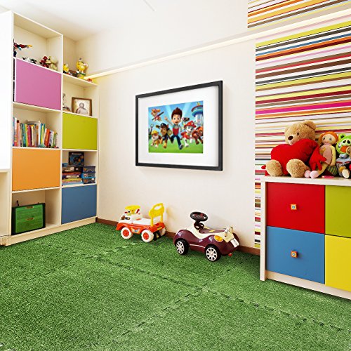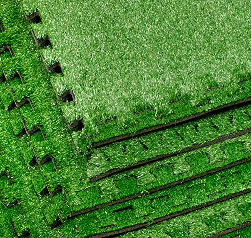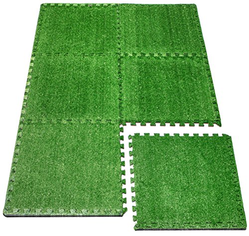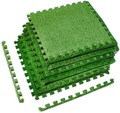 Sorbus Grass Mat Interlocking Floor Tiles – Soft Artificial Grass Carpet – Multipurpose Foam Tile Flooring – Patio, Playroom, Gym, Tradeshow 16 Sq ft (4 Tiles, Borders) (6 Tiles (24 Sq ft))
