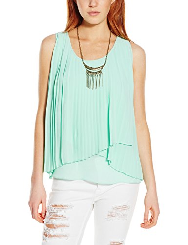 My Michelle Junior's Pleated Overlapped Sleeveless Top with Necklace and Keyhole At Back, Mint, X-Large