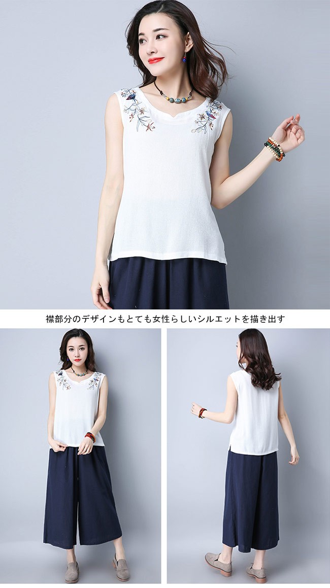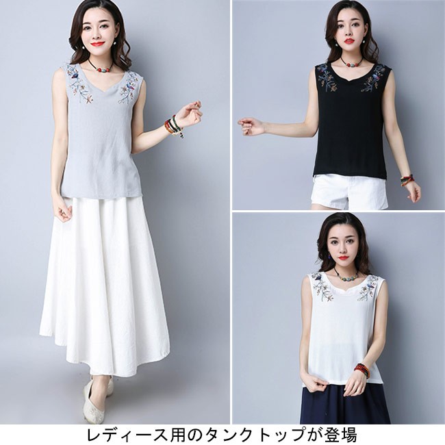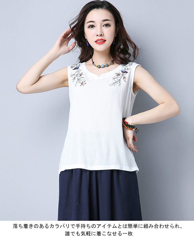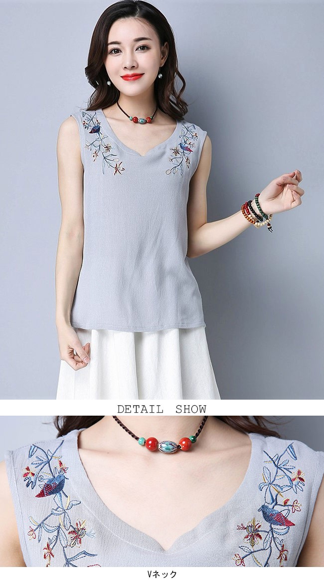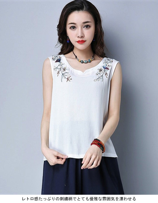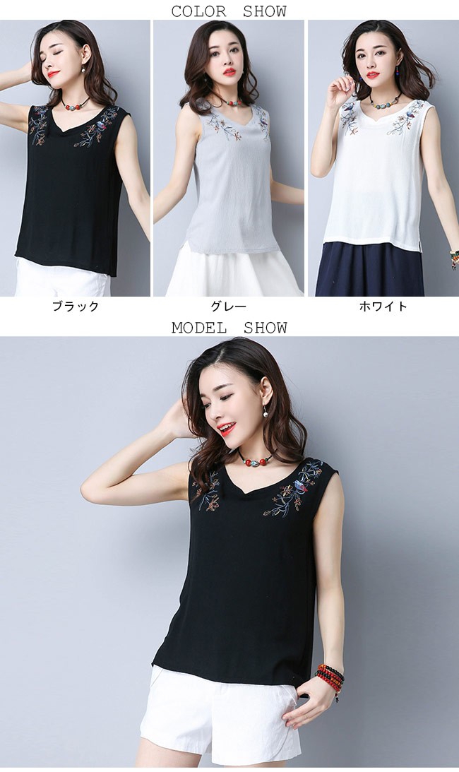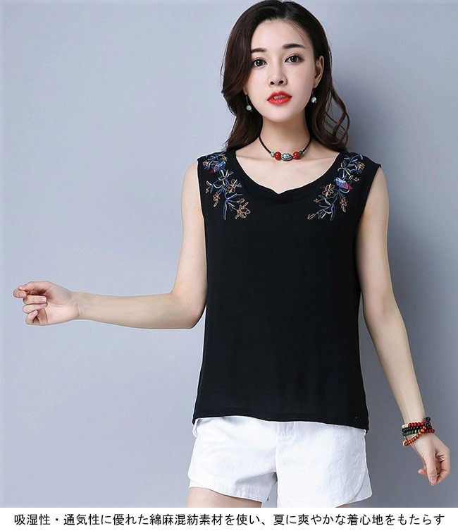 レディース タンクトップ Vネック 女性用 刺繍 トップス ノースリーブ 夏物 薄手 ゆったり レトロ Tシャツ 着まわしレディース用のタンクトップが登場吸湿性・通気性に優れた綿麻混紡素材を使い、夏に爽やかな着心地をもたらすレトロ感たっぷりの刺繍柄でとても優雅な雰囲気を漂わせる襟部分のデザインもとても女性らしいシルエットを描き出す落ち着きのあるカラバリで手持ちのアイテムとは簡単に組み合わせられ、誰でも気軽に着こなせる一枚カラー:ブラック グレー ホワイト素材 綿麻混紡サイズ(cm) M L XL 2XLM 着丈56 バスト92L 着丈57 バスト96XL 着丈58 バスト1002XL 着丈59 バスト104ご注意:※サイズは平置きサイズです。素人採寸ですので、若干の誤差がございます、ご了承ください。