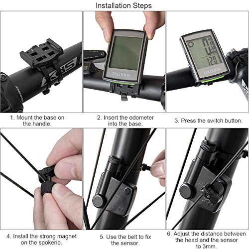 LULULION brand of bicycle speedometer wireless is a 2017 edition of bicycle computer made to compatible fit with most bicycles (ordinary bicycle, mountain bikes, road cycling, folding bike, etc.); designed with IP55.8 grade water-proof so you could enjoy your biking experience anytime anywhere without having to worry about possible damage from rain. The wireless feature guarantees accurate tracking with the sensor and the computer not more than 60cm. It keeps a track record of your riding time, average speed, odometer, maximum speed, distance, clock, scan, temperature, calorie consumption; The LCD back-light support a glare-free for proper visibility and readability whether at daytime or in the night, even while on the move. Also, the HD big data/number display encourages easy reading without leaning or squinting. It auto wake-up from sleeping mode when it senses the vibration from a bicycle. Perfect for everyday biking, mountain bikes, road cycling, folding bike and much more. 0