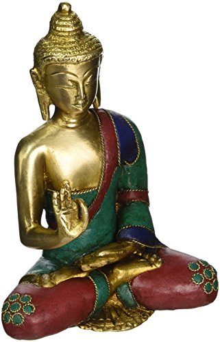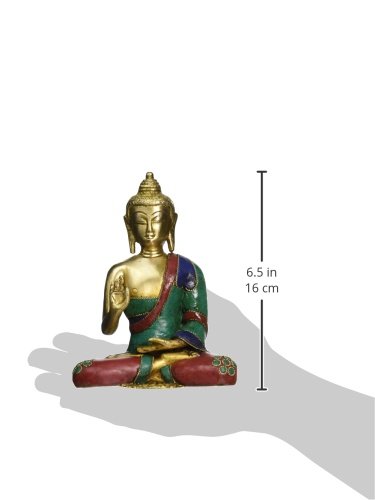 AapnoCraft Thai Blessing/Abhaya Buddha Statue Brass Handmade Shakyamuni Buddha Sculpture Bodhi With Unique Coral & Gemstone Work