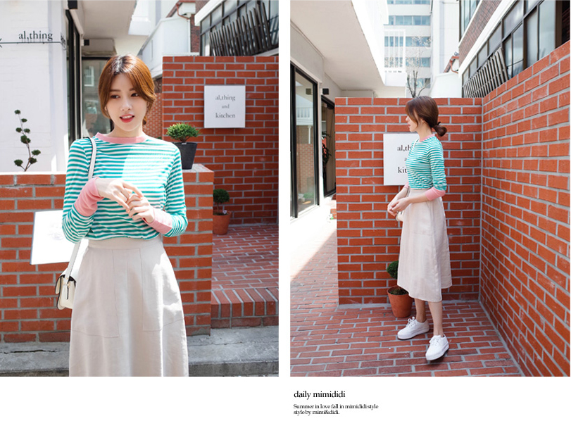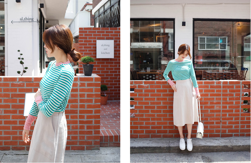 데일리룩으로 손이자주가는 스트라이프 티셔츠이구요.