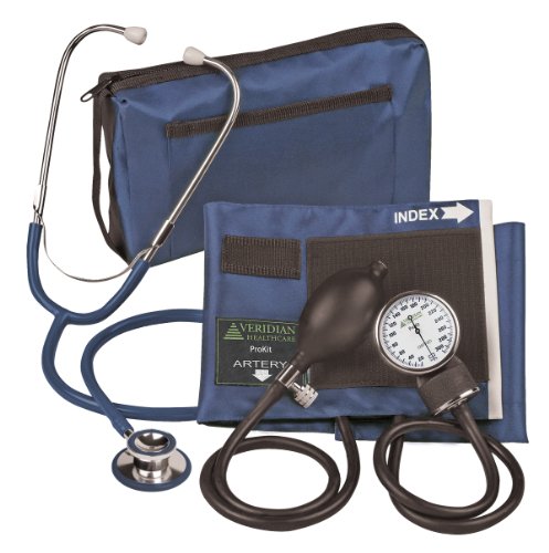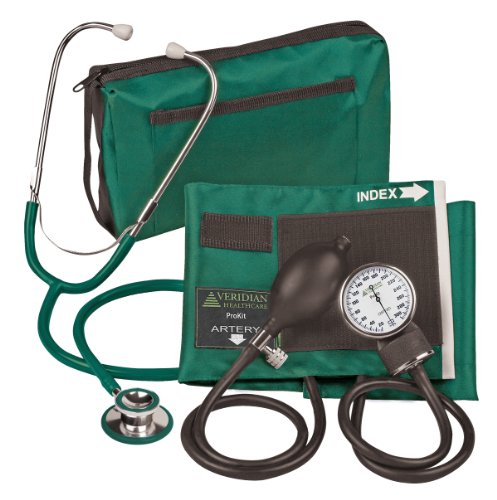 Outstanding quality and versatility come together in convenient all-in-one, professional kits. prokits are ideal for nurses, students and emts. aneroid gauge: standard air release valve and bulb and coordinating calibrated nylon adult cuff. aluminum dual head stethoscope: non-chill diaphragm retaining and bell ring. aluminum dual head chestpiece. tube length: 22 inch; total length: 30 inch. includes: black gauge with white faceplate, standard air release valve and inflation bulb, 2-tube bladder, black calibrated nylon cuff, dual head stethoscope, one spare set of eartips and zippered attaché case.Feature