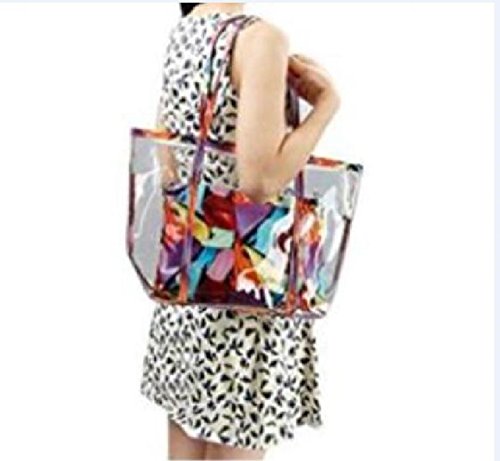 Silver Wattle Womens Large Clear Tote Bag with Zipper Closure PVC Waterproof Beach Shoulder Travel Bag