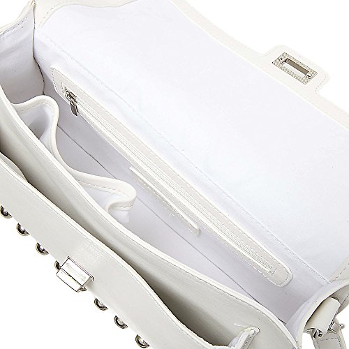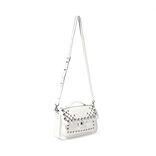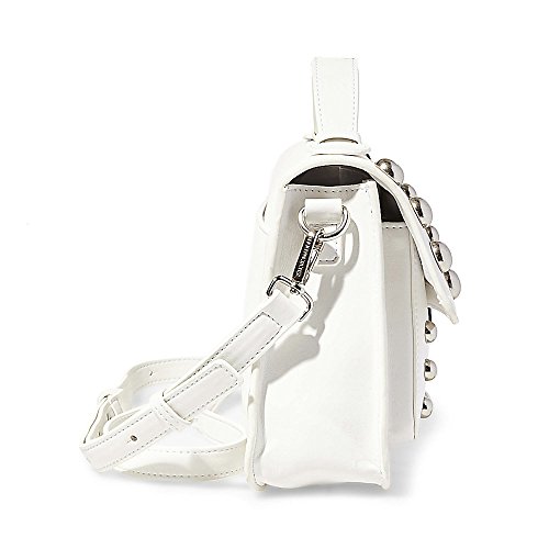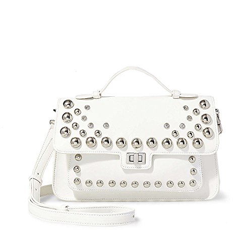 Steve Madden Mary Nonleather Frontflap Silver Studded Satchel Handbag, White