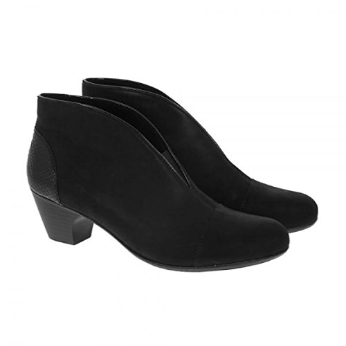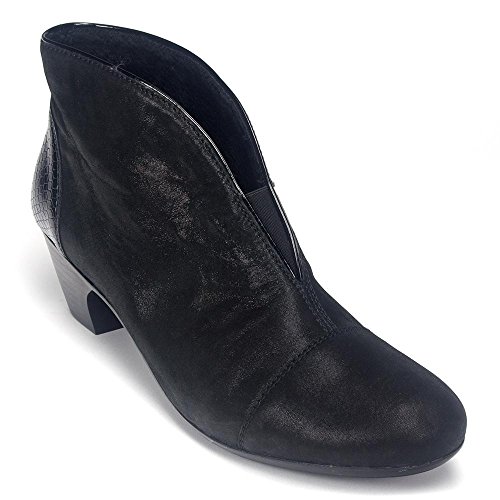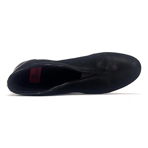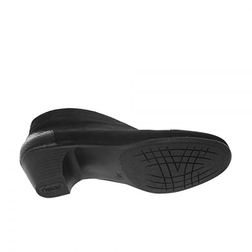 Studio : Rieker Publisher : Rieker Binding : Apparel Product Description The 50553 ankle boot by Rieker is nothing less than a work of art. ?This two toned bootie boasts a rich leather upper and scalloped opening. ?This bootie looks amazing with your favorite leggings for a sleek walk around town. ? Rich leather upper. Elastic stretch at the instep. Textile fleece lining and cushioned footbed. Stacked heel. Flexible man-made outsole. Imported.Measurements: Heel Height: 1 3/4 in Weight: 10 oz Platform Height: 1/4 in 0