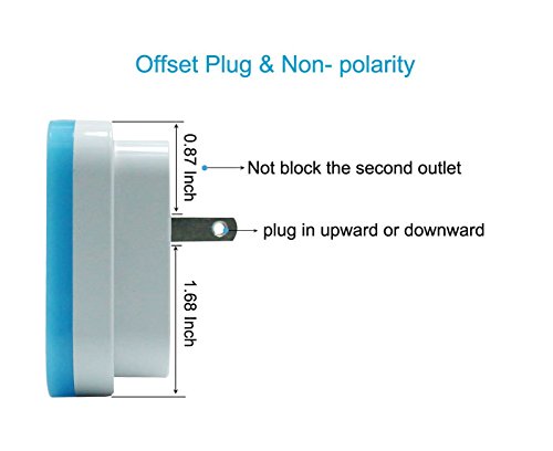 Offset Prongs & Non- polarity --- nightlights don't block the second outlet on the wall. Waynowon night lights are built-in non- polarity, they can be plugged in upward or downward