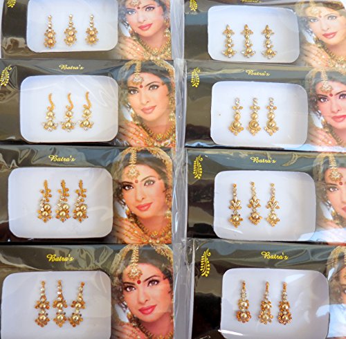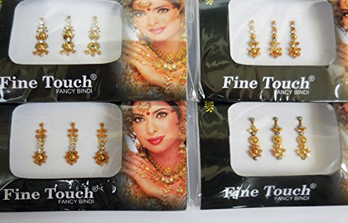4 Packs - 12 Long Different Design Gold Bindis