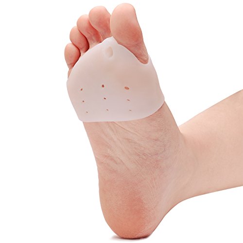 About the product 1.These soft gel cushions can reduce the soreness swelling caused by running jogging or standing all day relieve the discomfort of flattened metatarsal arches and morton's neuroma, as well as foot problem like itching, burning, blisters, or cracks on your forefoot 2.Very easy to clean, you just hand wash the pads with just soap and water . They will air dry overnight and are ready to be worn the next day 3.Non-slip material means they stay on even while you're active, especially with snug fitting socks. Perfect for runners, ballet, hiking, and other activities where boots may cause friction and metatarsals need cushioning
