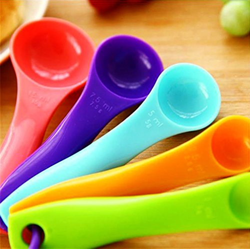 - Heavy-Duty Strong Plastic - All five measuring spoons are made of strong plastic so they will not bend easily. There are no sharp edges, which is a common problem with many other brands. These spoons are smooth edged and strong.