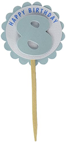 All About Details Shimmer Light Blue 8th Birthday Cupcake Toppers, Set of 12