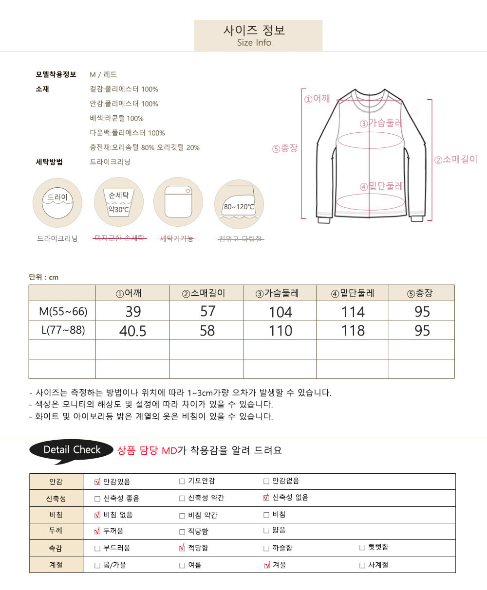 M(55~66) / L(77~88) 총 두가지 사이즈로