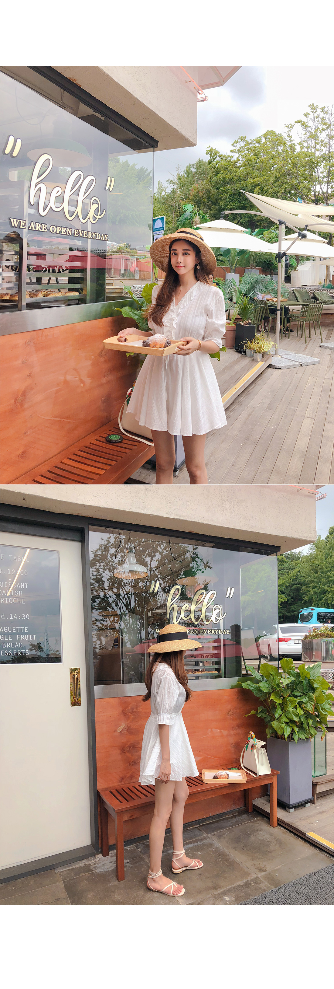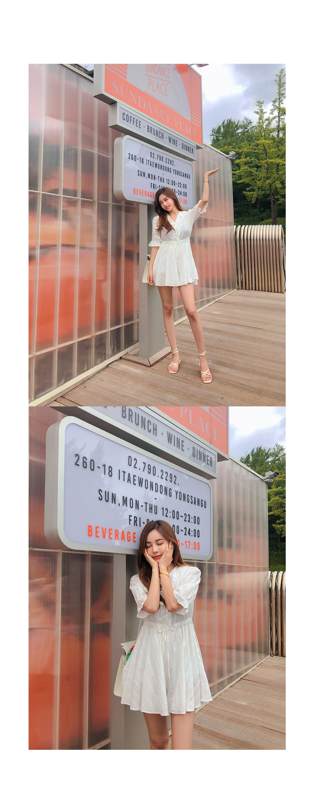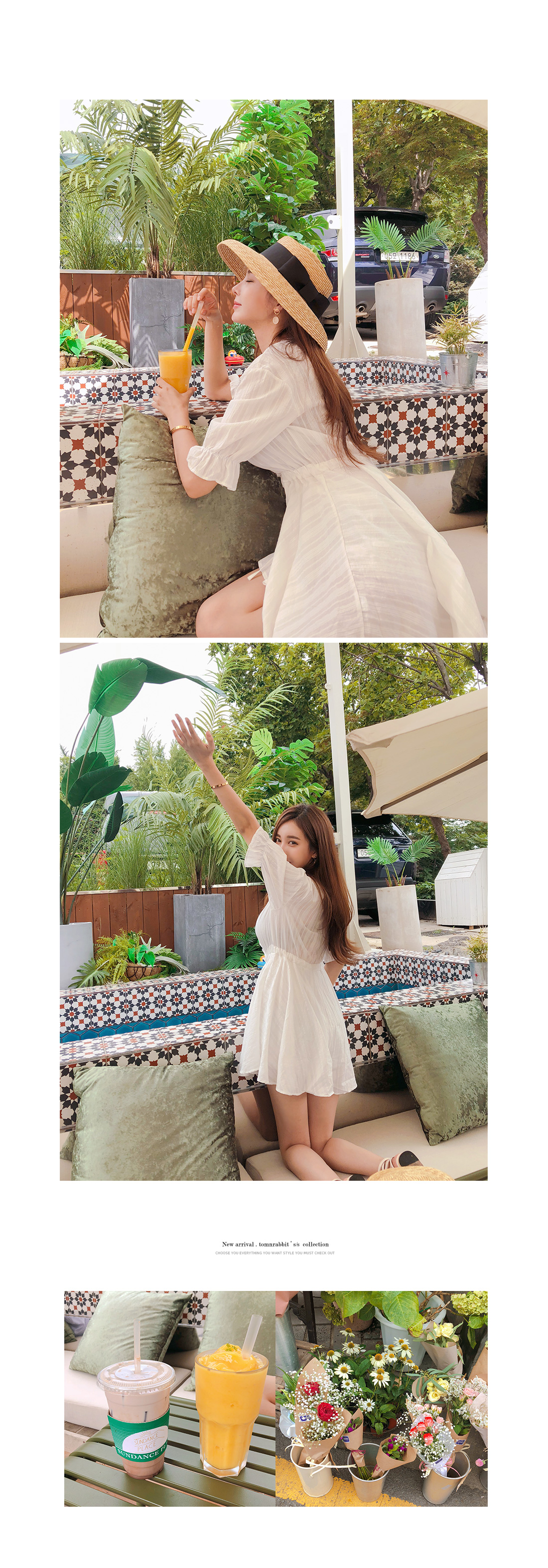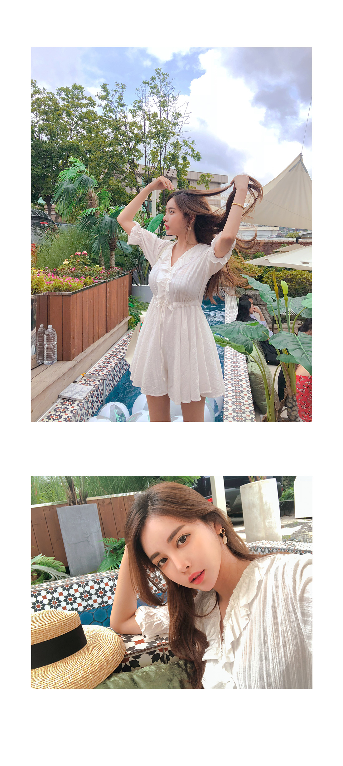 MD COMMENT 러블리한 실루엣을 연출해 줄 점프수트 소개할게요.기본 브이네크라인에 반팔 소매 기장으로제작된 점프수트 아이템인데요,적당히 여유있는 핏과 가벼운 소재감으로S/S시즌 시원하게 즐기기 좋아요.소매 귀엽게 연출되며 끝단이 밴드로 연출되어사랑스럽게 포인트 연출 해주었구요.바스트라인을 따라 셔링지며 떨어지는 프릴로룩에 은은한 포인트를 챙겨주었으며 클로징이 가능한 단추로 입고벗을때 편안해요 !허리라인에 스트링으로 리본으로 묶어슬림한 허리라인과 함께 트렌디한 스타일을 연출해 주었구요.허리아래로 플레어지며 떨어지는 디자인으로볼륨감있게 연출해드리며 치마바지 디테일로좀더 편안하게 즐기 실수 있을꺼에요 ~!여유있는 밑위 길이와 와이드한 핏으로 편안한 착용감과 함께살짝 숏한 기장감이 더해 한층 길어 보이는 레그라인 또한 느껴볼 수 있구요,단독 착용만으로도 충분한 포인트가 되어 주어 다양한 매력으로 즐기기 좋은 점프수트 아이템으로 추천할게요!휴양지룩으로 바캉스에서 더욱 빛이날 몰디브 점프수트★비침이 있을수 있으니 스킨색 이너를 착용해주시면 좋아요^^COLOR/SIZE 아이보리FREEMODEL FITTING 아이보리/FREE