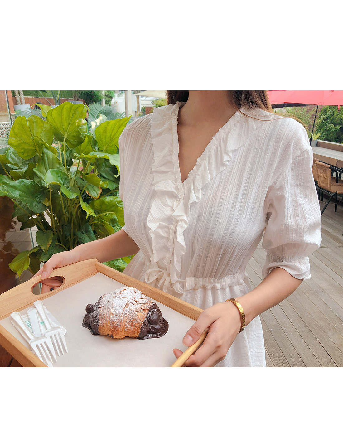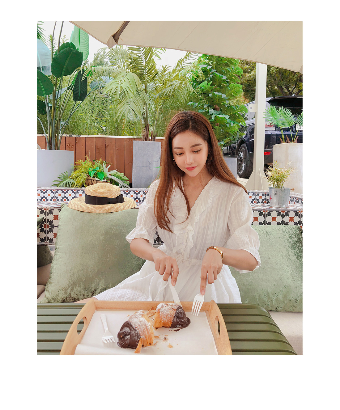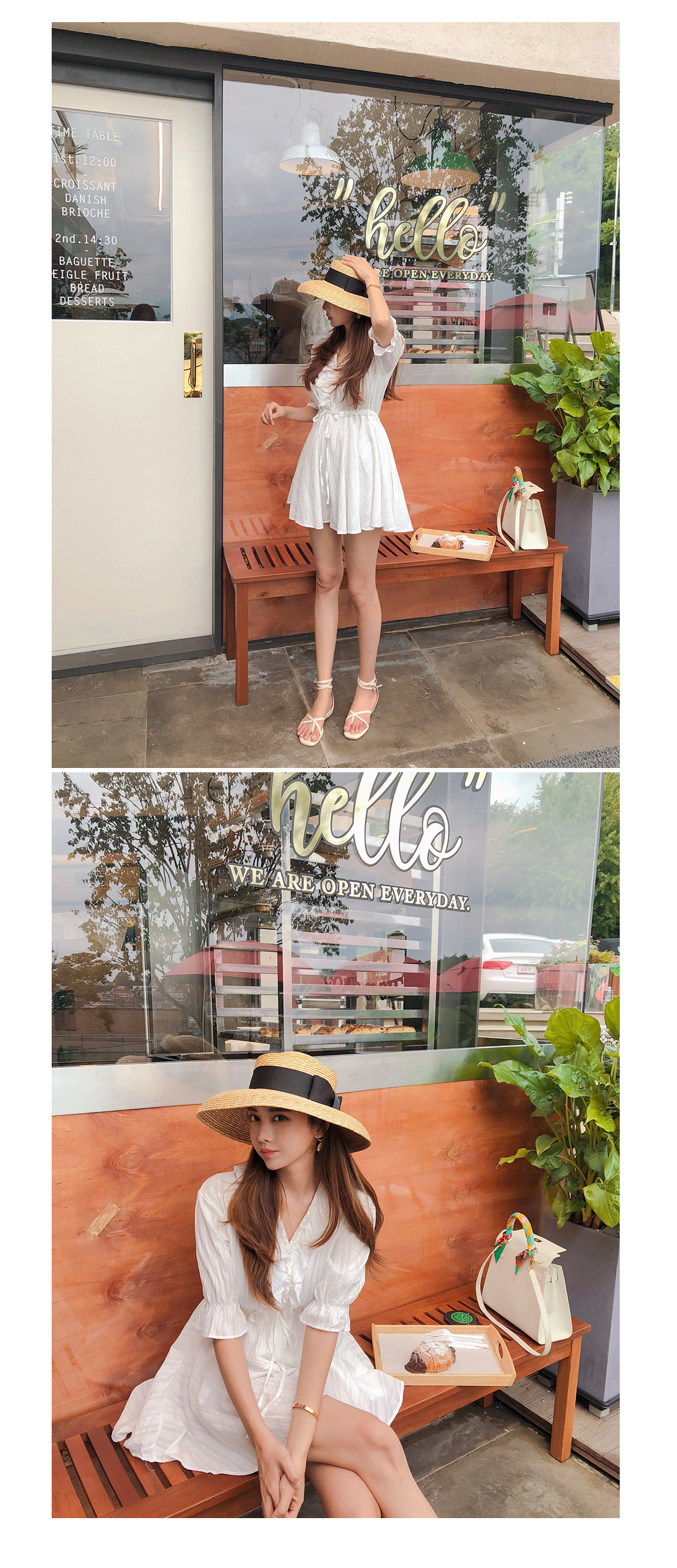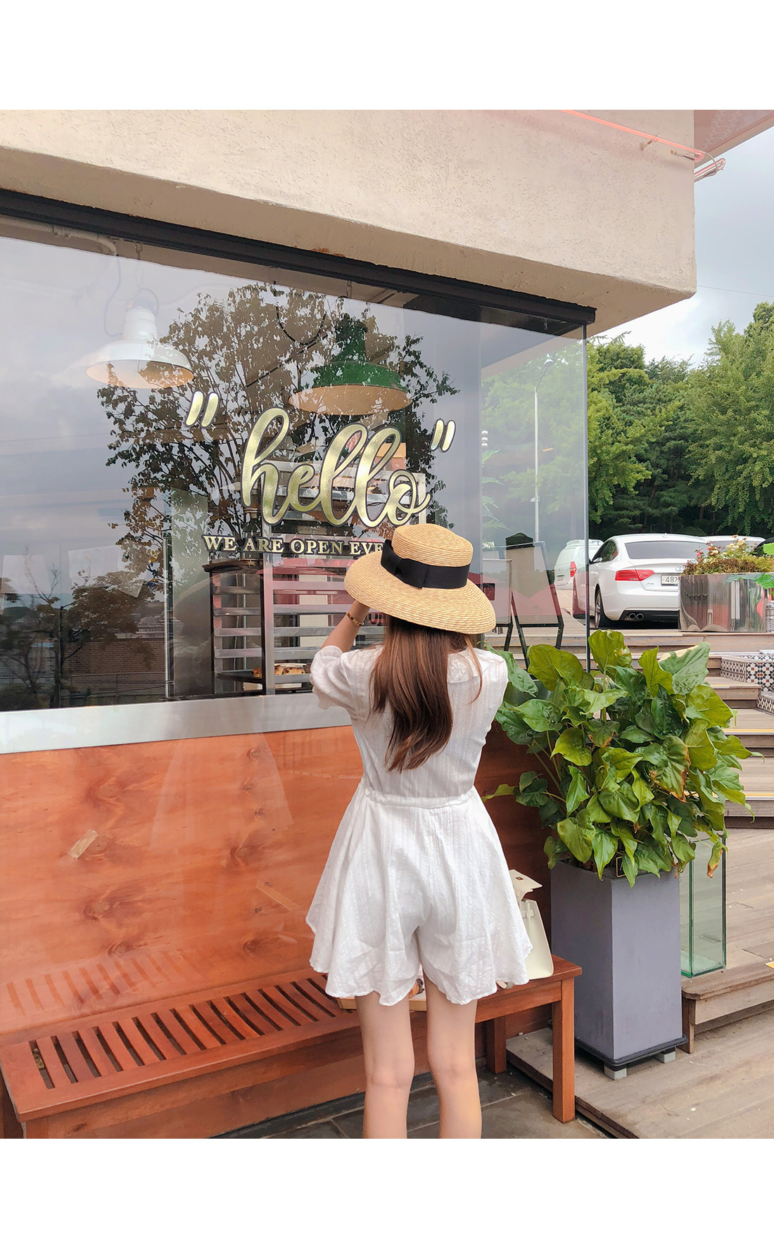 MD COMMENT 러블리한 실루엣을 연출해 줄 점프수트 소개할게요.기본 브이네크라인에 반팔 소매 기장으로제작된 점프수트 아이템인데요,적당히 여유있는 핏과 가벼운 소재감으로S/S시즌 시원하게 즐기기 좋아요.소매 귀엽게 연출되며 끝단이 밴드로 연출되어사랑스럽게 포인트 연출 해주었구요.바스트라인을 따라 셔링지며 떨어지는 프릴로룩에 은은한 포인트를 챙겨주었으며 클로징이 가능한 단추로 입고벗을때 편안해요 !허리라인에 스트링으로 리본으로 묶어슬림한 허리라인과 함께 트렌디한 스타일을 연출해 주었구요.허리아래로 플레어지며 떨어지는 디자인으로볼륨감있게 연출해드리며 치마바지 디테일로좀더 편안하게 즐기 실수 있을꺼에요 ~!여유있는 밑위 길이와 와이드한 핏으로 편안한 착용감과 함께살짝 숏한 기장감이 더해 한층 길어 보이는 레그라인 또한 느껴볼 수 있구요,단독 착용만으로도 충분한 포인트가 되어 주어 다양한 매력으로 즐기기 좋은 점프수트 아이템으로 추천할게요!휴양지룩으로 바캉스에서 더욱 빛이날 몰디브 점프수트★비침이 있을수 있으니 스킨색 이너를 착용해주시면 좋아요^^COLOR/SIZE 아이보리FREEMODEL FITTING 아이보리/FREE