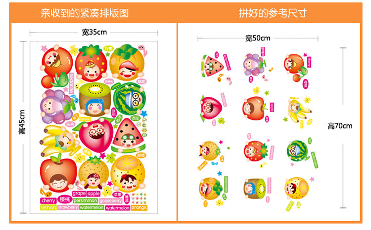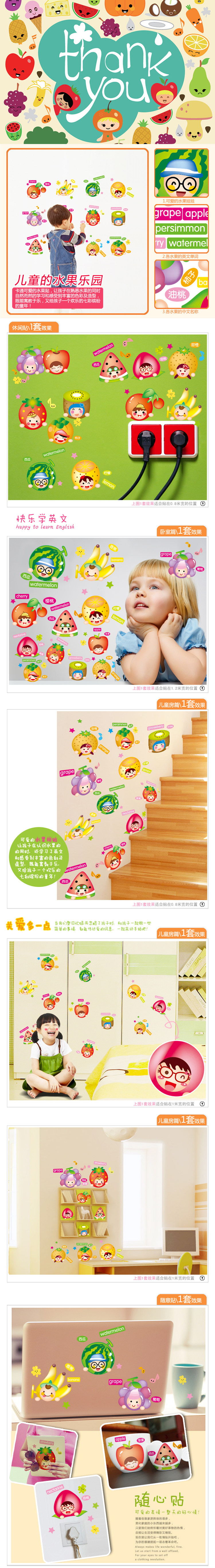 可移除墙贴纸/卡通水果/墙纸贴画儿童房学校教室布置幼儿园贴花