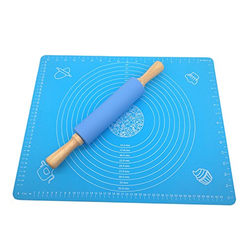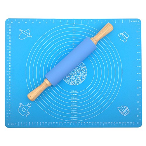 JamHoo Nonstick Rolling Pin & Silicone Large Pastry Mat With Measurements - 15.7"x19.7" Non-Slip Sheet For Rolling Dough