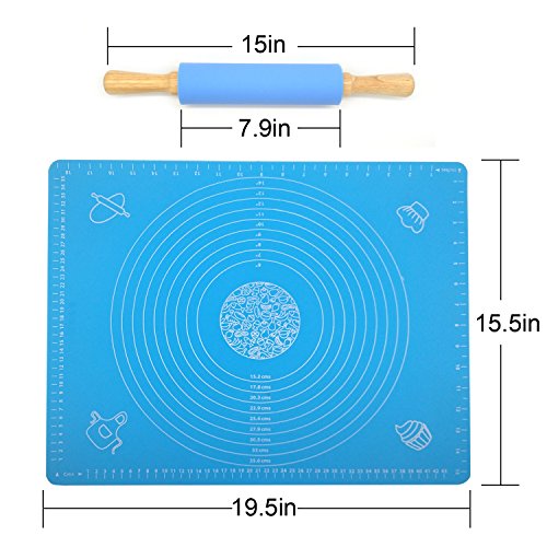 GREAT VALUE: Pack of 2. 1 x Nonstick rolling pin measures 7.9 x 2.1" (handle to handle measures 16x 2.1"). 1 x Large pastry mat with measurement of 25 x 17". Large enough for your baking.
