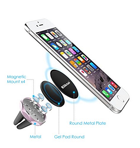 Eliktak Simple New Style Magnetic Air Vent Car Mount Holder Suit with 2 Metal Plates for Universal Phone and GPS Device, (Rose Gold)