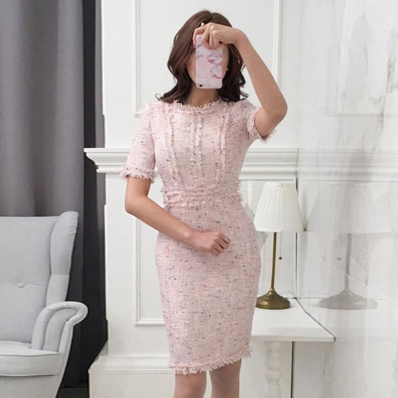은은하게 반짝이는 트위드 소재감이얼굴까지 화사하게 밝혀주는 원피스랍니다.단정한 라운드네크라인에 반팔 디자인으로지금부터 간절기 시즌 내내즐기시기 좋으실거에요~소매, 바스트, 허리 등수술로 마무리 된 정통적인 트위드 디자인으로특히 허리선이 살~짝 위에 위치하여다리가 더욱 길어보이는 효과를 챙겼답니다.데일리 오피스룩은 물론,하객 룩, 소개팅으로 적극 추천해드릴게요^^COLOR / SIZE핑크 / S,M