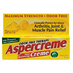 -. Feature : Maximum strength for temporary relief of minor arthritis pain, muscle aches and strains. / Contains three intensive skin conditioners. / Odor-free.