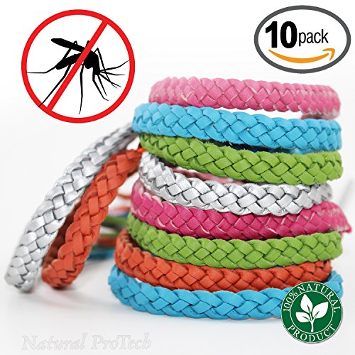 Mosquito Repellent Leather Braided Bracelet - 100% Natural Insect Repeller 10 pack, DEET Free, No Spray Pest Control Safe For Babies, Kids, Adults. Perfect for Outdoor and Indoor. Multicolor