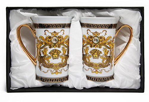 -. Brand : Royal Porcelain -. Color : White, Gold -. EAN : 0791810908074 -. Feature : Set of 2 beautiful White Mugs / Greek Pattern Medusa Series / 12 Oz capacity / High quality, 24K gold-plated ornament / Sold in beautiful gift box, perfect idea for a gift -. Label : Royal Porcelain -. Manufacturer : Royal Porcelain -. ProductGroup : Kitchen -. ProductTypeName : KITCHEN -. Publisher : Royal Porcelain -. Studio : Royal Porcelain -. Title : Royal Porcelain Set of 2 White Coffee Cups or Tea Mugs, Greek Pattern Medusa Series, 12 Oz, Gold-plated Ornament -. UPC : 791810908074
