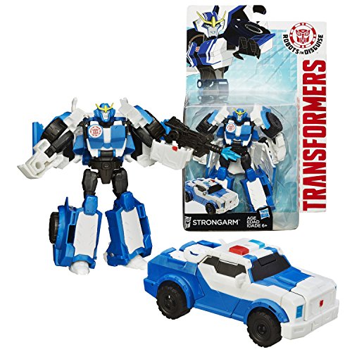 -. Title : Hasbro Year 2014 Transformers Robots in Disguise Animation Series Deluxe Class 5 Inch Tall Robot Action Figure - Autobot STRONGARM with Blaster r.i.f.l.e (Vehicle Mode: Police Car)