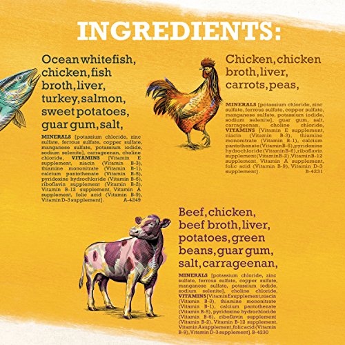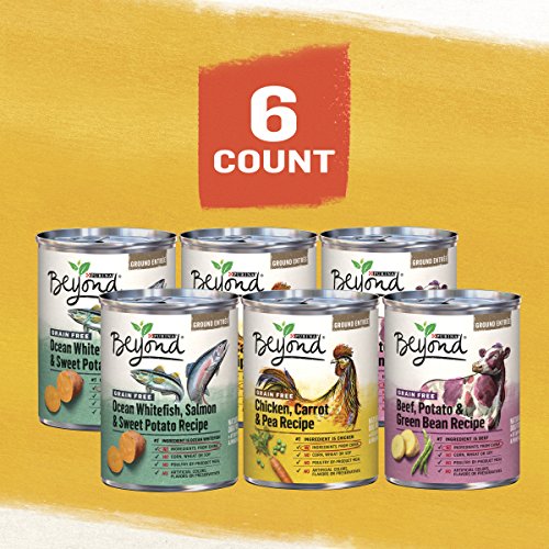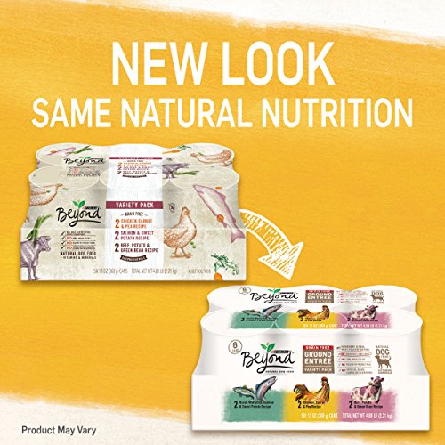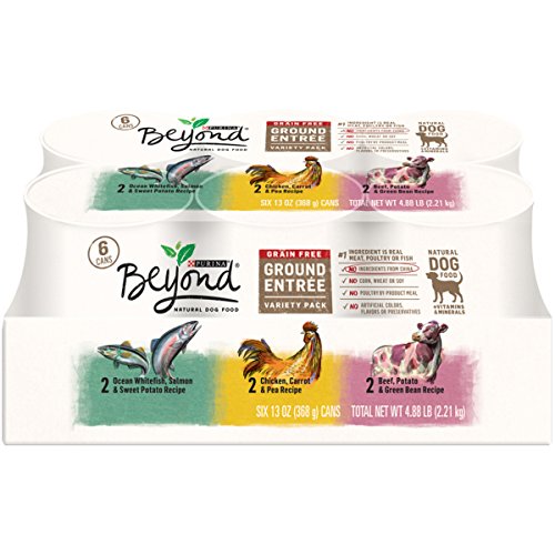Offer your dog a variety of grain-free mealtime options with this Purina Beyond Grain Free Ground Entrees adult wet dog food variety pack. Each recipe in this pack features real beef, chicken or salmon as the #1 ingredient, so you can rest easy knowing he's getting wholesome meals made with high-quality ingredients you know and trust. With real, recognizable ingredients plus essential vitamins and minerals in every serving, this wet dog food gives him the nutrition he deserves in grain- and gluten-free recipes you want for him. Crafted without ingredients from China, this premium dog food collection includes three different recipes in every package, making it easy for you to mix things up at mealtime while tending to his nutritional needs. Give your faithful friend a natural meal you can trust with every delicious selection in this Purina Beyond variety pack. Give your canine the deliciousness he deserves to satisfy his cravings with an order of this Purina Beyond variety pack.Feature