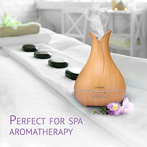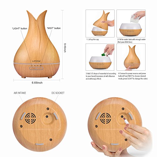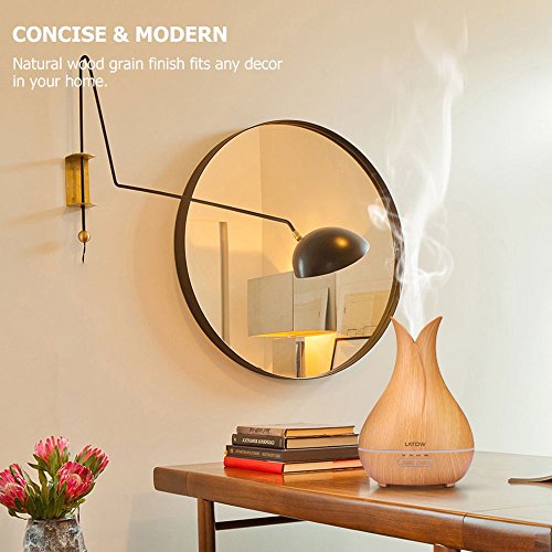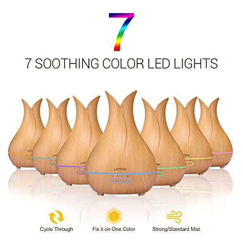 Latow Essential Oil Diffuser Humidifier, 500ml Wood Grain Aromatherapy Diffuser with 7 Color Changing LED Lights and Waterless Auto Shut-off, Ultrasonic Cool Mist Humidifier for Bedroom, Home, Yoga