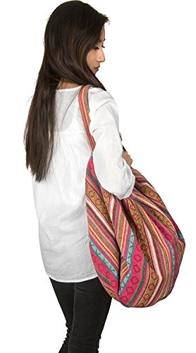 -. Title : Pink Jacquard Cotton Baguette Shoulder Travel Canvas Tote Bag Hobo Style Casual Market Purse Handbag