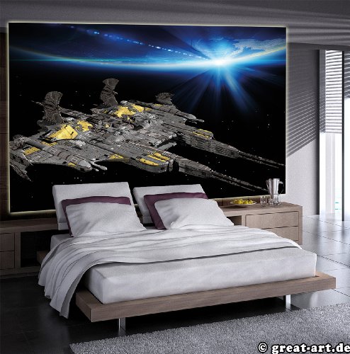 - Title : Spaceship Photo Wallpaper - Space Battleship Mural - Universe Spaceship Wall Decoration