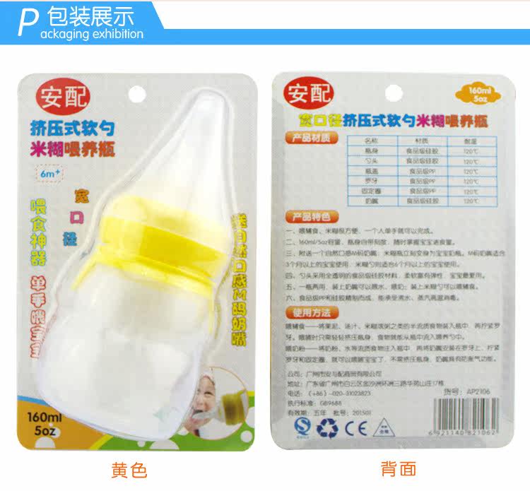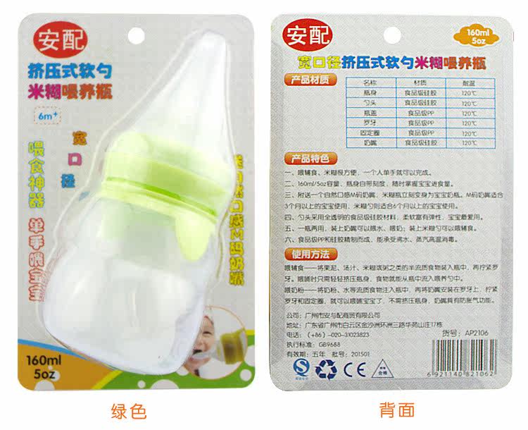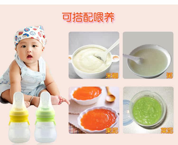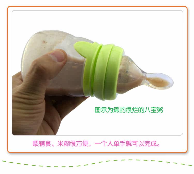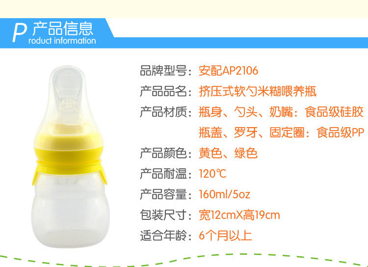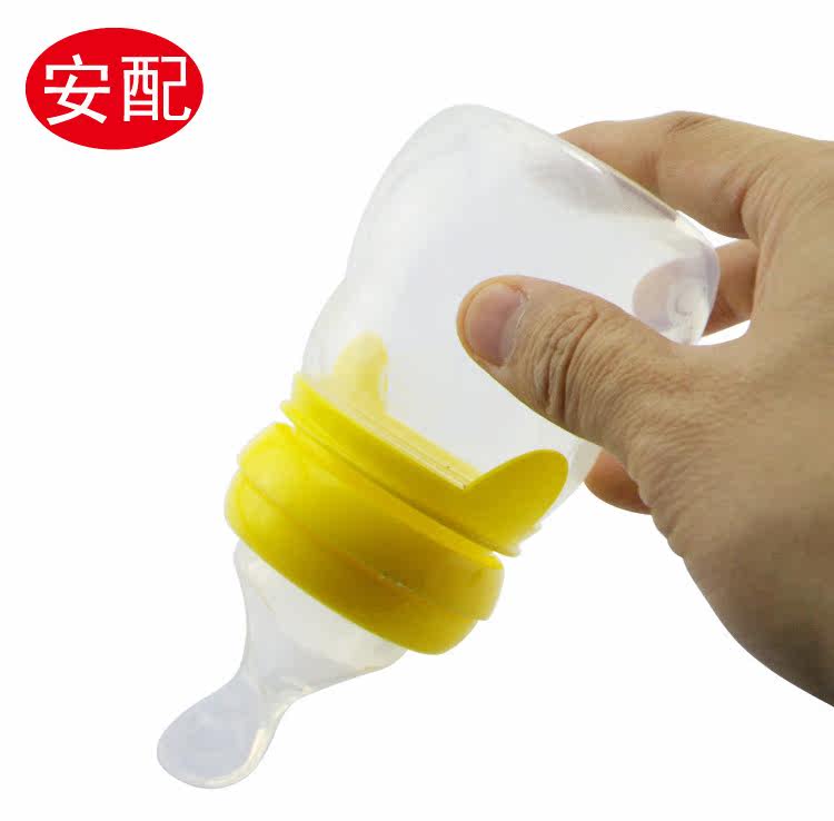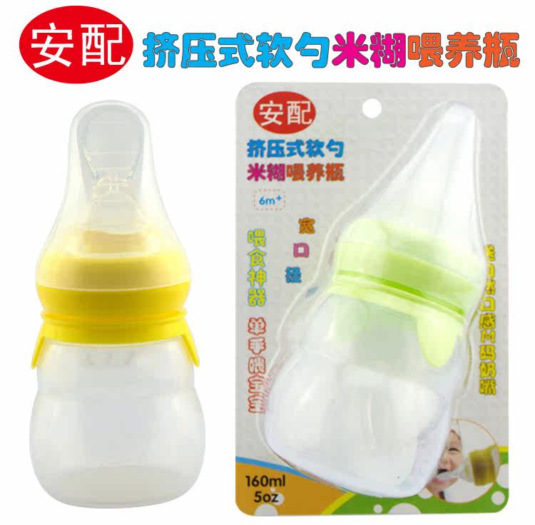 安配婴儿米糊瓶辅食喂养勺子宝宝喂食器挤压式软勺全硅胶宽口奶瓶