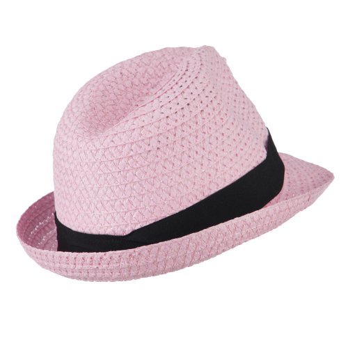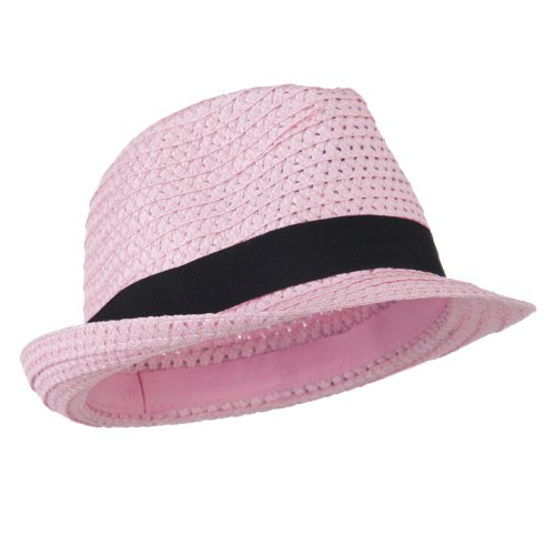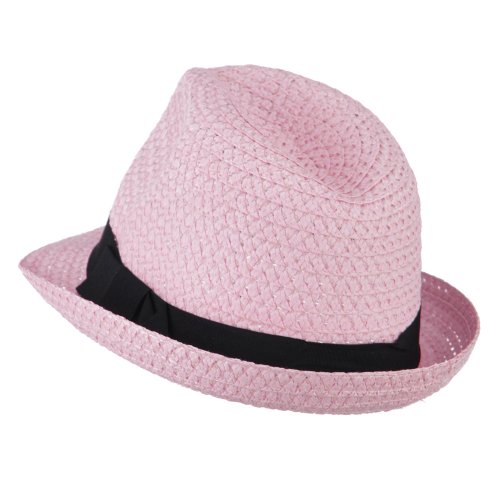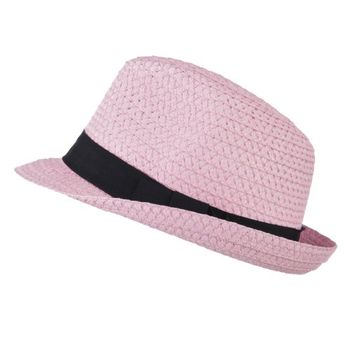 -. Title : Ribbon Hatband Straw Fedora - Pink