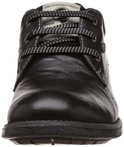 Binding : Apparel Product Description Color : Black Upper Material : Genuine Leather Sole Material : TPR Closing : Lace-up Tip Shape : Round SKU : ID9023 BLACK Lining : leather/mesh lining Add a robust touch to your character with these beautifully crafted rough boots from the house of ID. Flexible and comfortable, the sole of this pair is crafted using TPR with leather belt finish, to keep your feet comfortable all day long. These shoes are adorned with naturally processed satin finished trim and zipper detail to team up your character. Wear this shoe to showcase true grit and character. Special attributes:- padded collar with leather inner, crumbled finished leather featuring rugged with contrast tan patch. Shoe care tips:-Use good quality leather shiner for best results. Do not expose to direct sunlight or heat for extended periods. 0 |