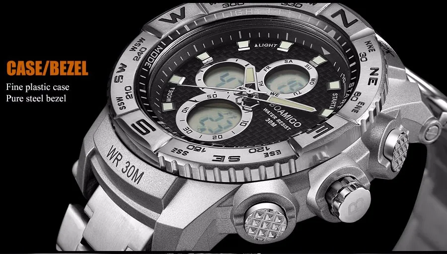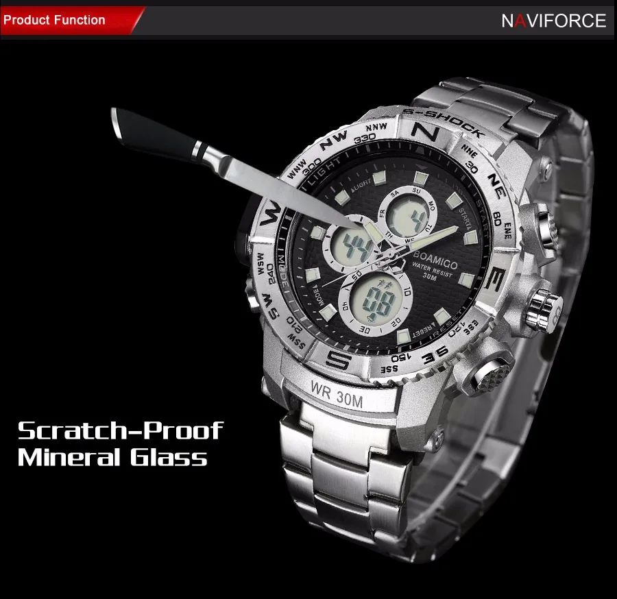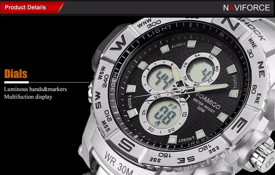 Feature:Water Resistant,LED display,Multiple Time Zone,Luminous,Stop Watch,Complete Calendar,Back Light,Shock Resistant,Chronograph,Perpetual Calendar,Auto Date,Week Display,Swim