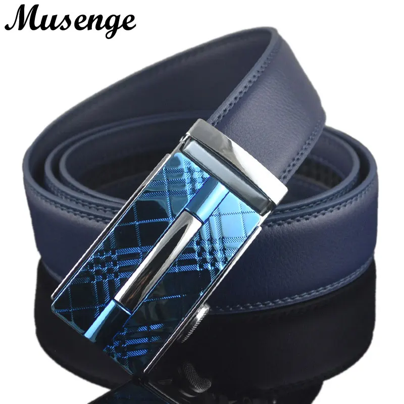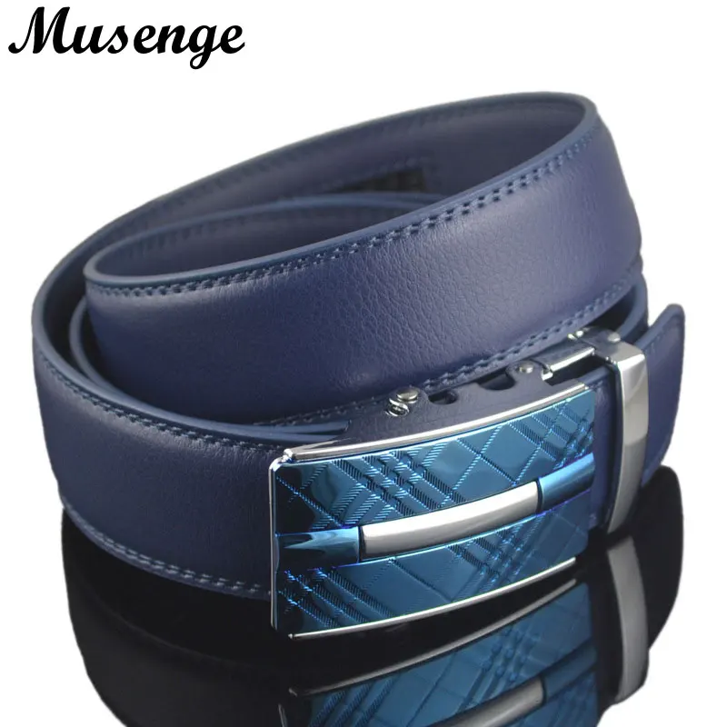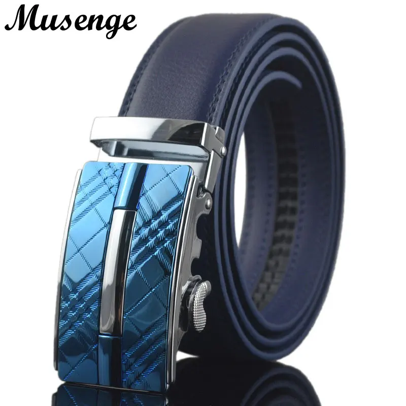 Gender: Leather Belt Men Belt Length: 110 cm, 115 cm, 120 cm, 125 cm, 130 cm Belt Color: Blue Black Brown Red Buckle Color: Blue Red Gray Gold Black Silver Decoration: Geometric Buckle Buckle Type: Automatic Buckle Popular Element: Ceinture Homme Ceinture