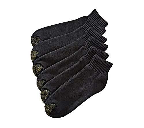 Gold Toe Men's Cotton Quarter Athletic Sock, Black, 6-Pack Size 10-13