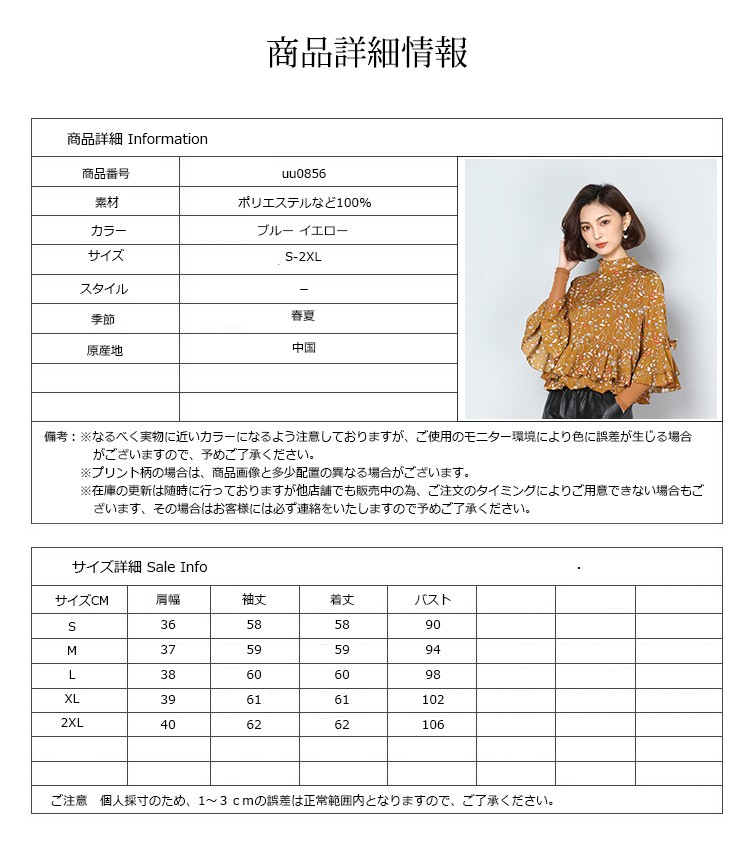 ■素材:ポリエステルなど100%■カラー:ブルー イエロー ■サイズ:S袖丈58着丈58バスト90肩幅36M袖丈59着丈59バスト94肩幅37L袖丈60着丈60バスト98肩幅38XL袖丈61着丈61バスト102肩幅392XL袖丈62着丈62バスト106肩幅40■原産地:中国