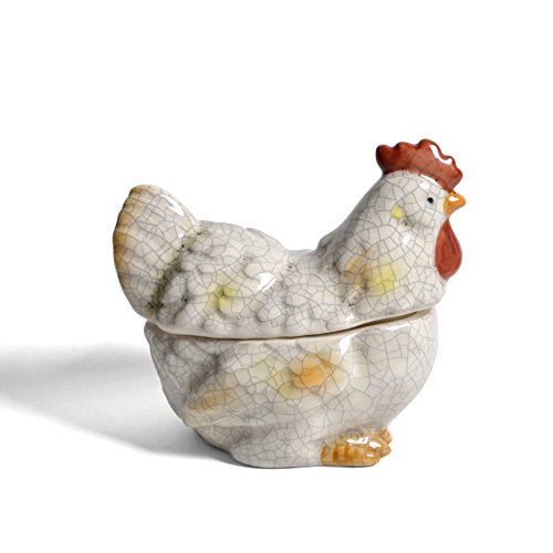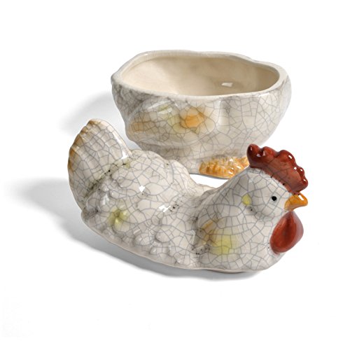 - Rooster-shaped, rustic stoneware jar