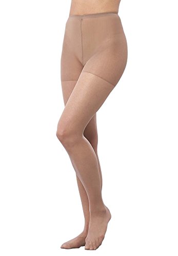 -. Feature : Sheer coverage ideal for everyday wear. High quality fabric feels soft and durable. / Panty portion eases thigh friction, cotton gusset. Wider thigh and calf for better fit. / Invisible run-resistant sandal toe. Soft, washable. / 100% Nylon. / Made in USA.